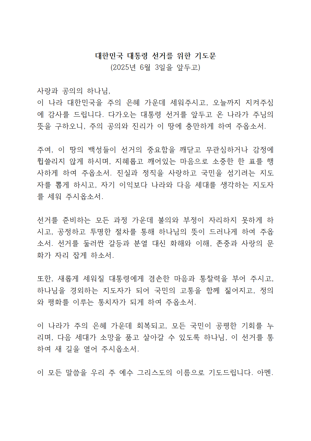 대통령 선거를 위한 기도문 (대선 기도문)