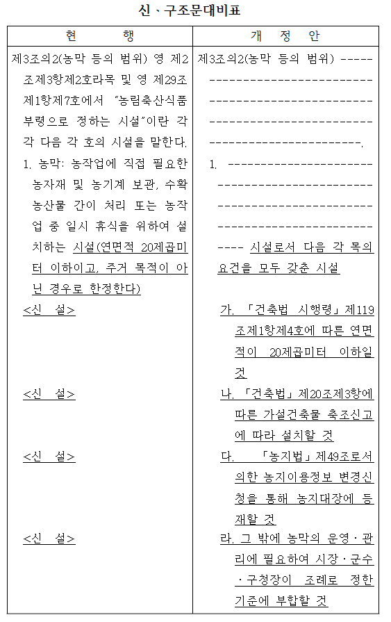 <농지법 시행규칙 일부개정령안 신구조문대비표>
