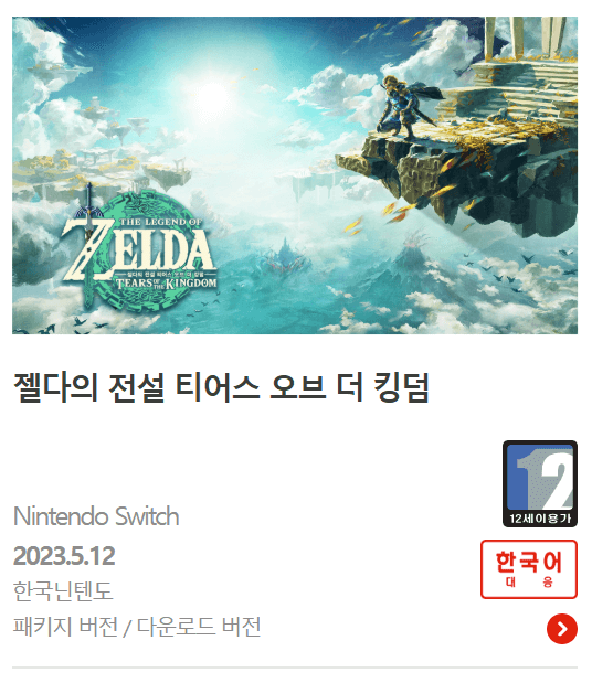 젤다의 전설: 티어스 오브 더 킹덤은 닌텐도 스위치 대표 타이틀 중 하나로, 광활한 오픈 월드를 탐험하며 전투와 퍼즐을 해결하는 게임입니다.