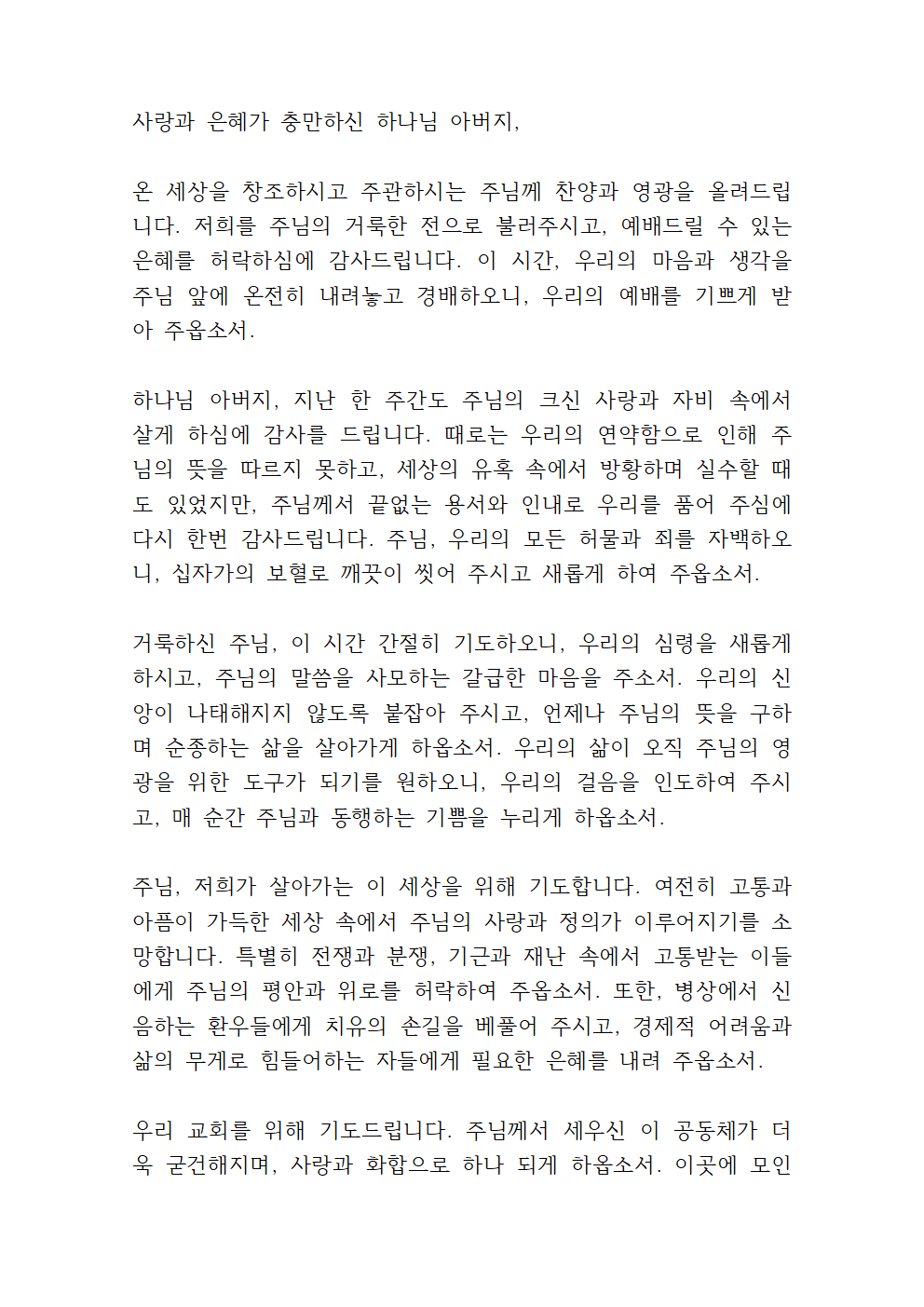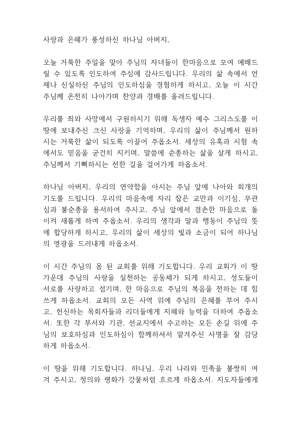 대표기도문 6