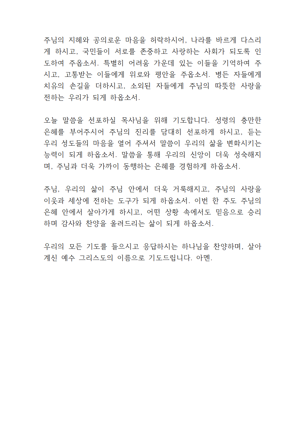 대표기도문 5