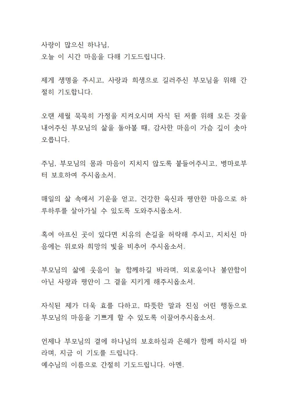 '부모님 건강 기도문'