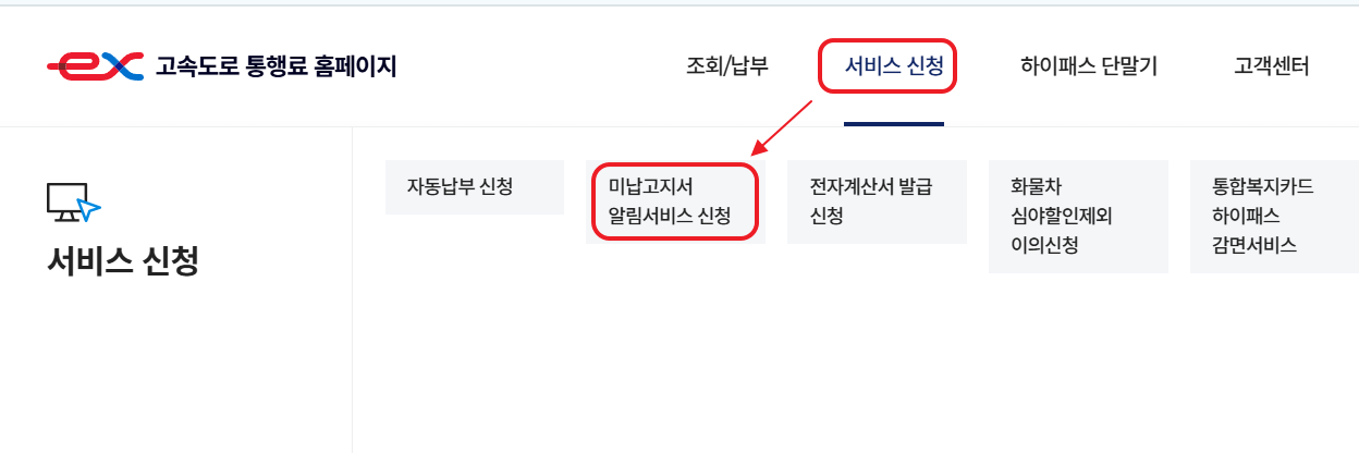 하이패스 미납요금 알림 서비스 신청하기