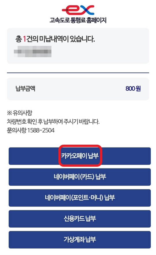 '하이패스 미납요금 카카오톡 납부 방법'