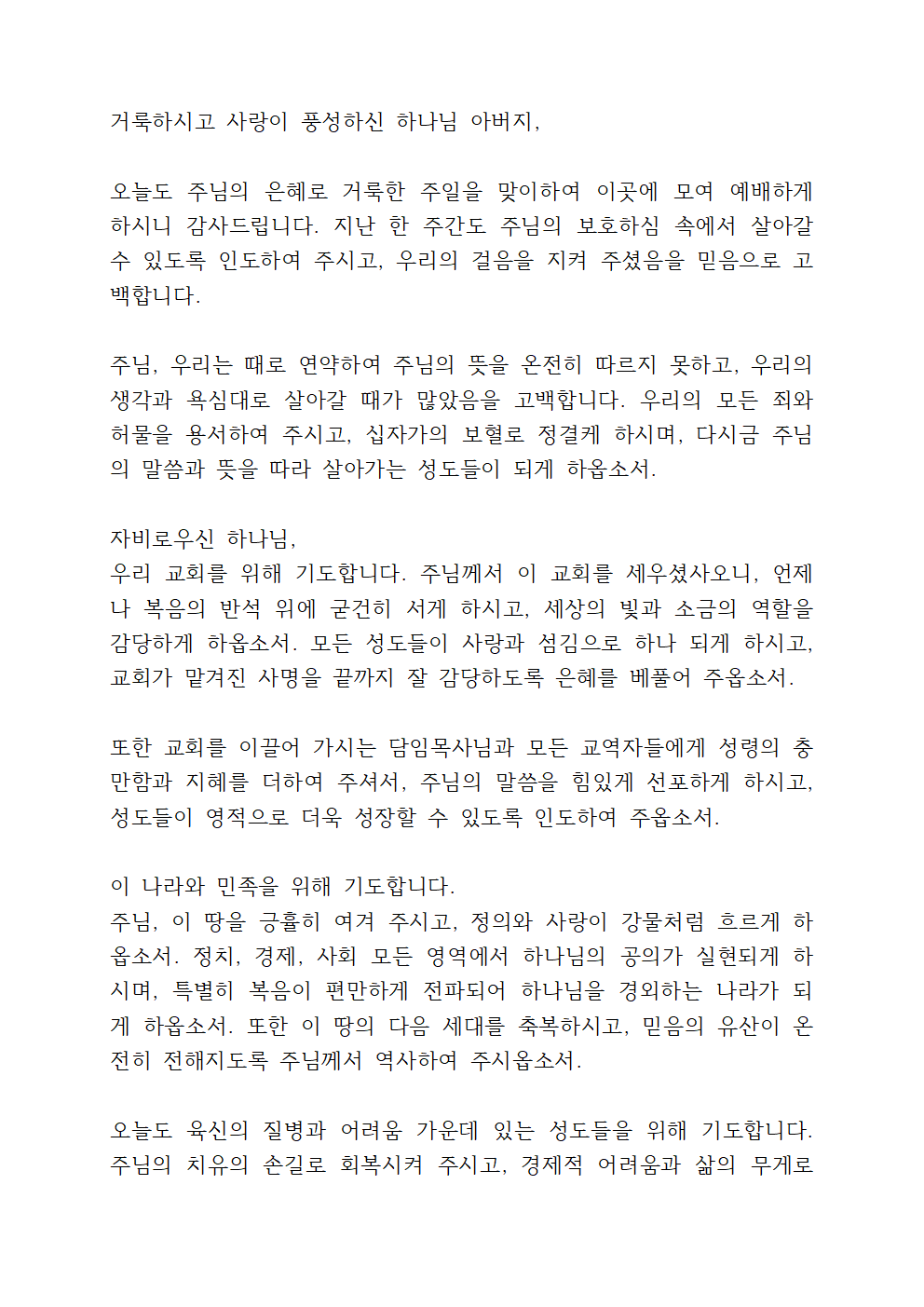 2월 넷째 주 기도문