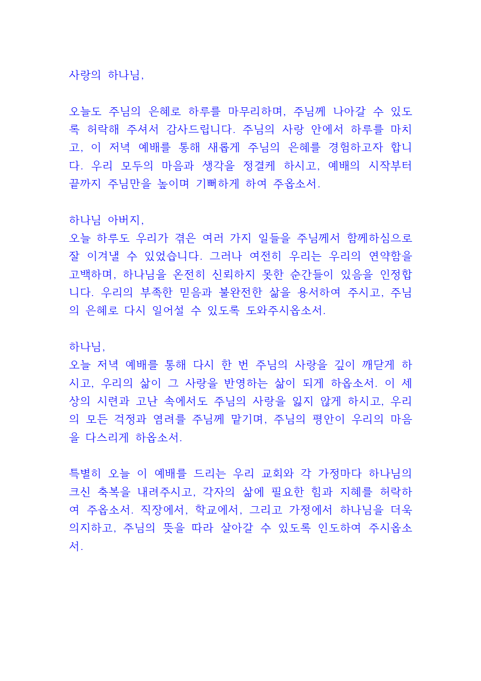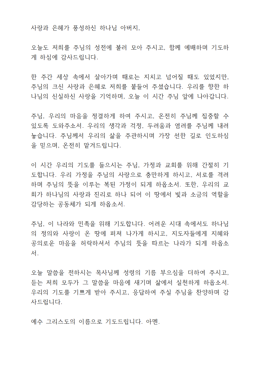 수요예배 기도문