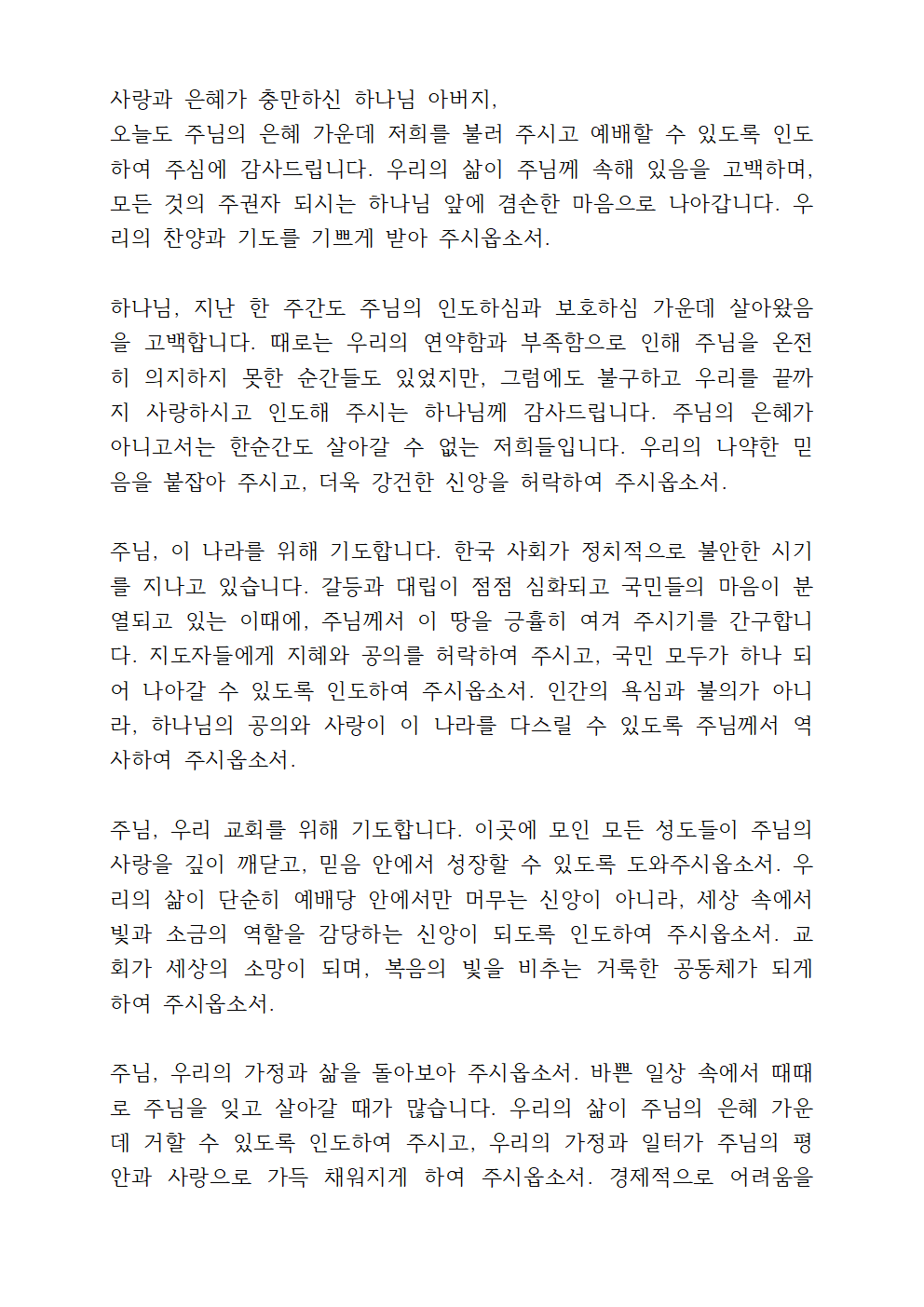 이번 글에서는 2025년 2월 넷째 주일 낮예배 대표기도문을 안내해 드리겠습니다.