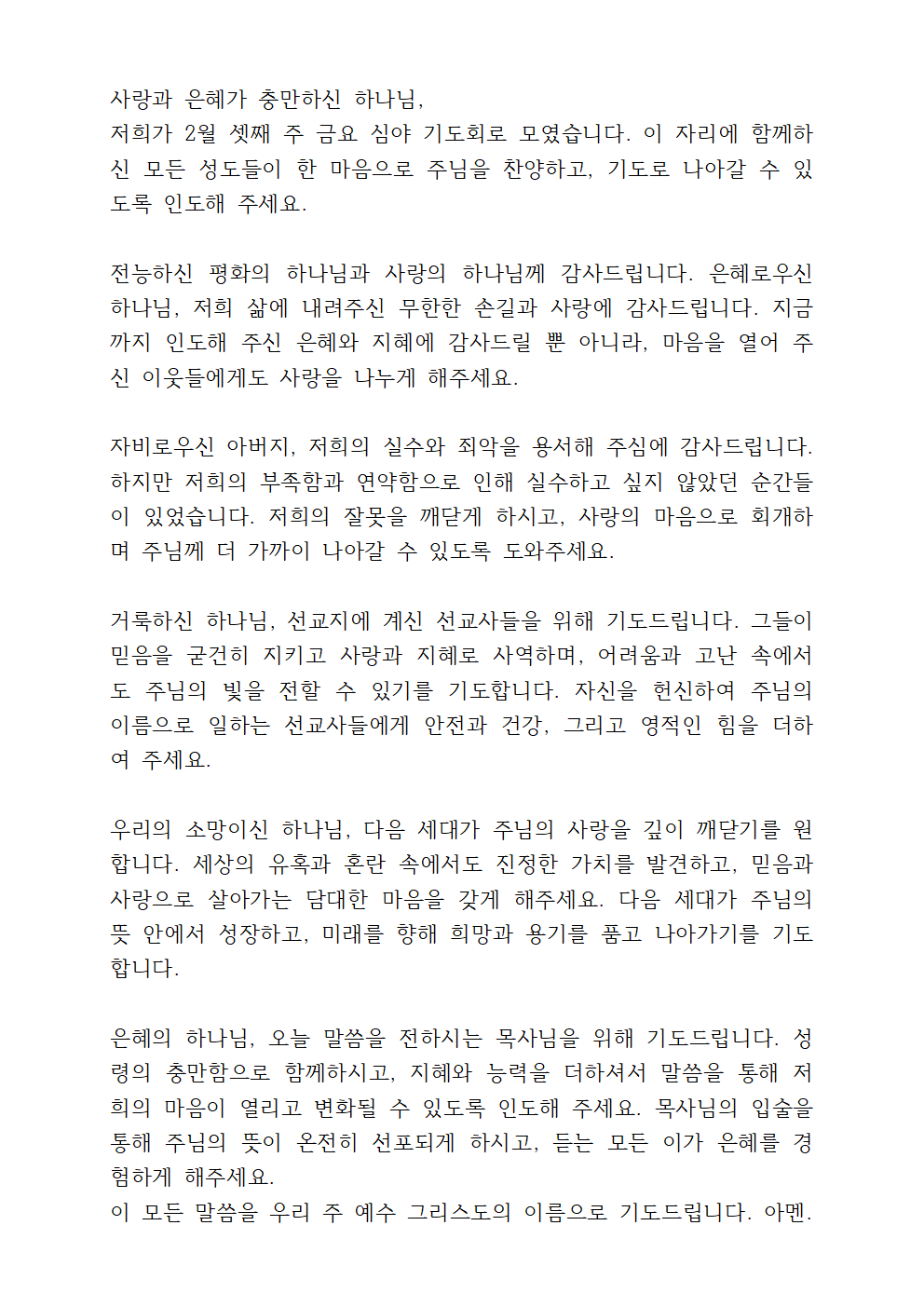 금요기도회 기도문