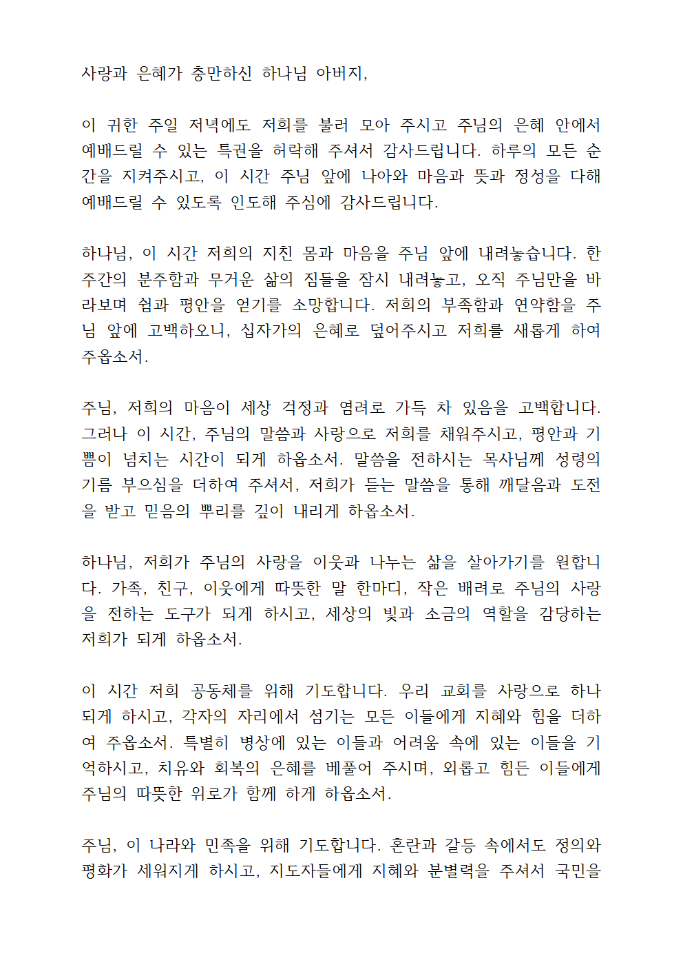 주일 저녁예배 기도문