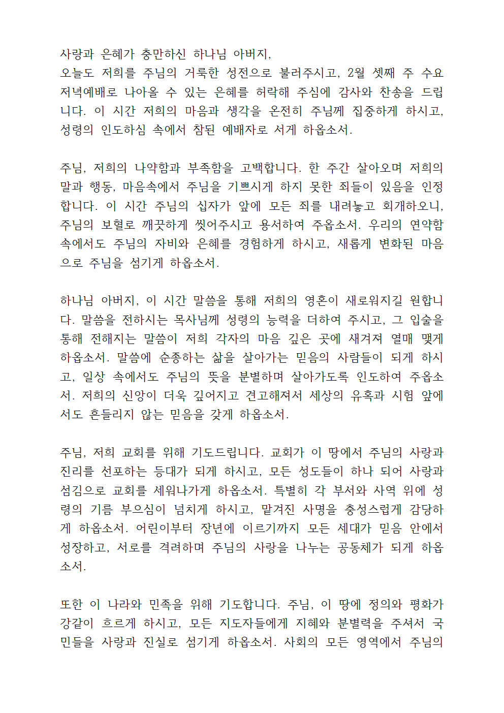 2월 셋째 주 기도문