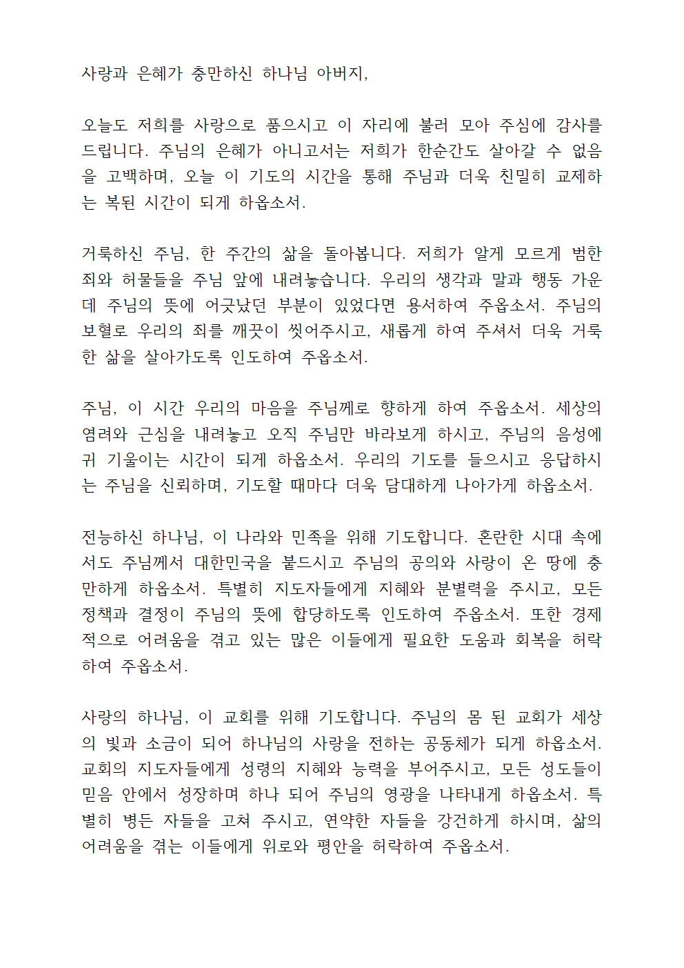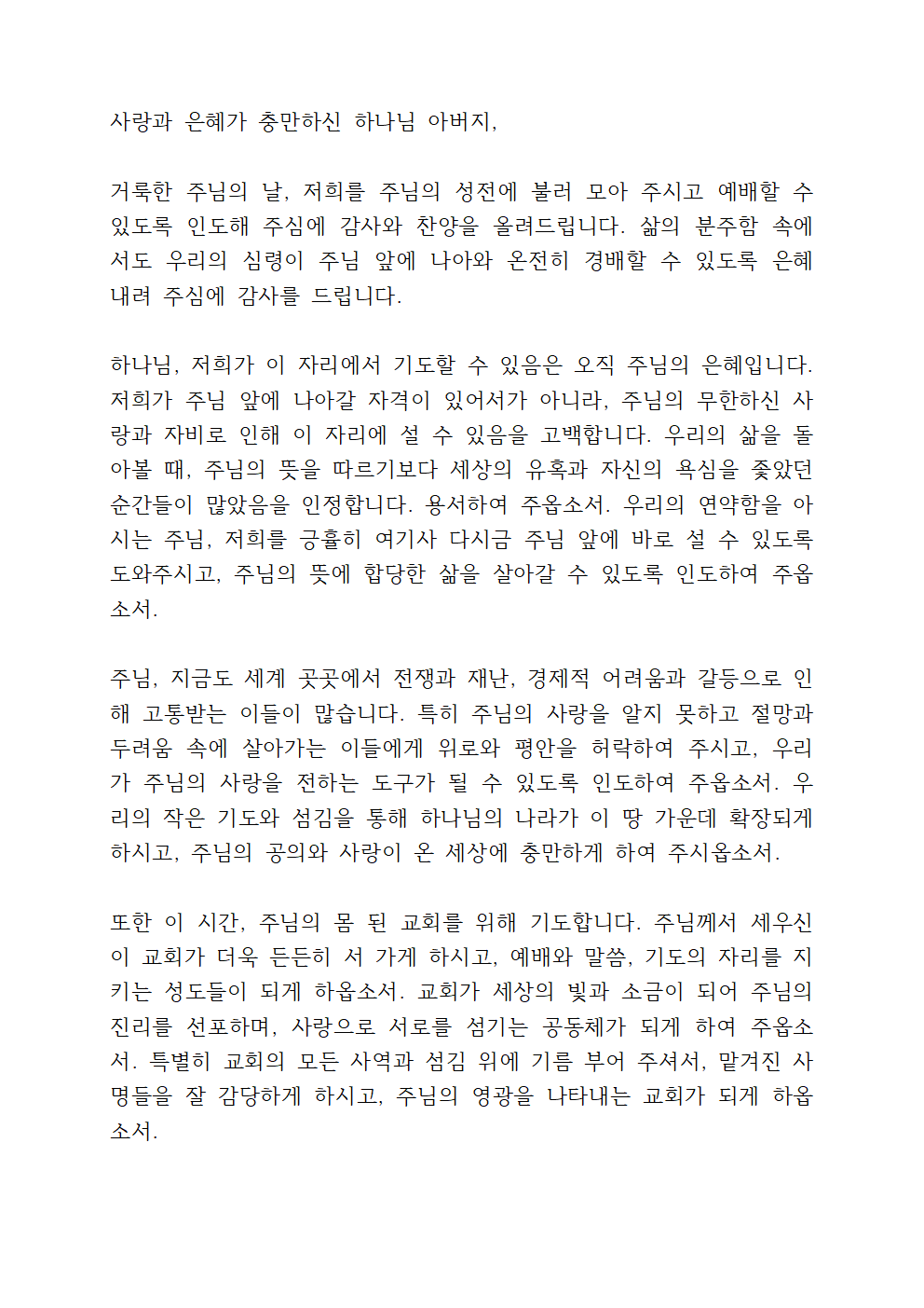 ※ 기도문을 한글 문서 or PDF 문서로 받으시려면 아래를 참고하세요.