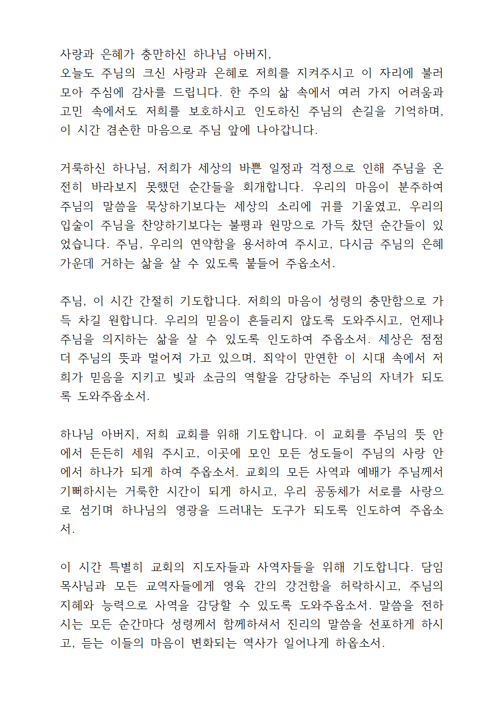 다른 기도문 보기 (주일 예배, 수요 예배, 금요기도회)