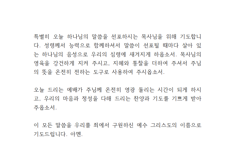 다른 기도문 보기 (주일 예배, 수요 예배, 금요기도회)