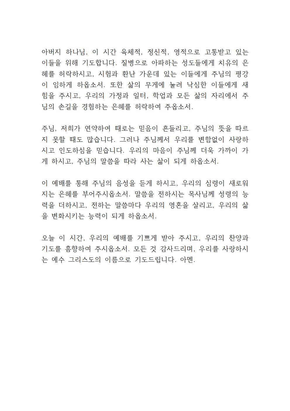 ※ 기도문을 한글 문서 or PDF 문서로 받으시려면 아래를 참고하세요.