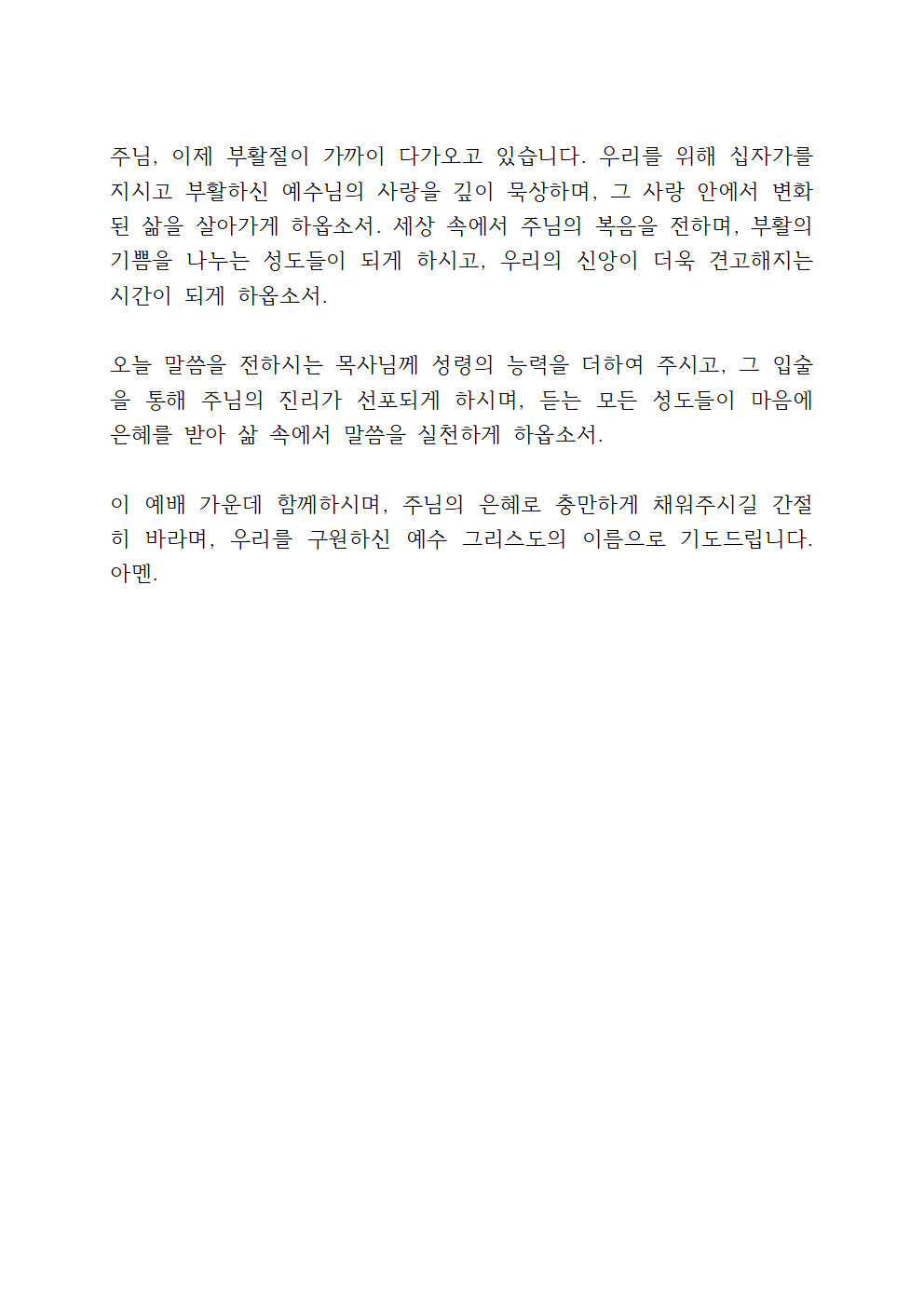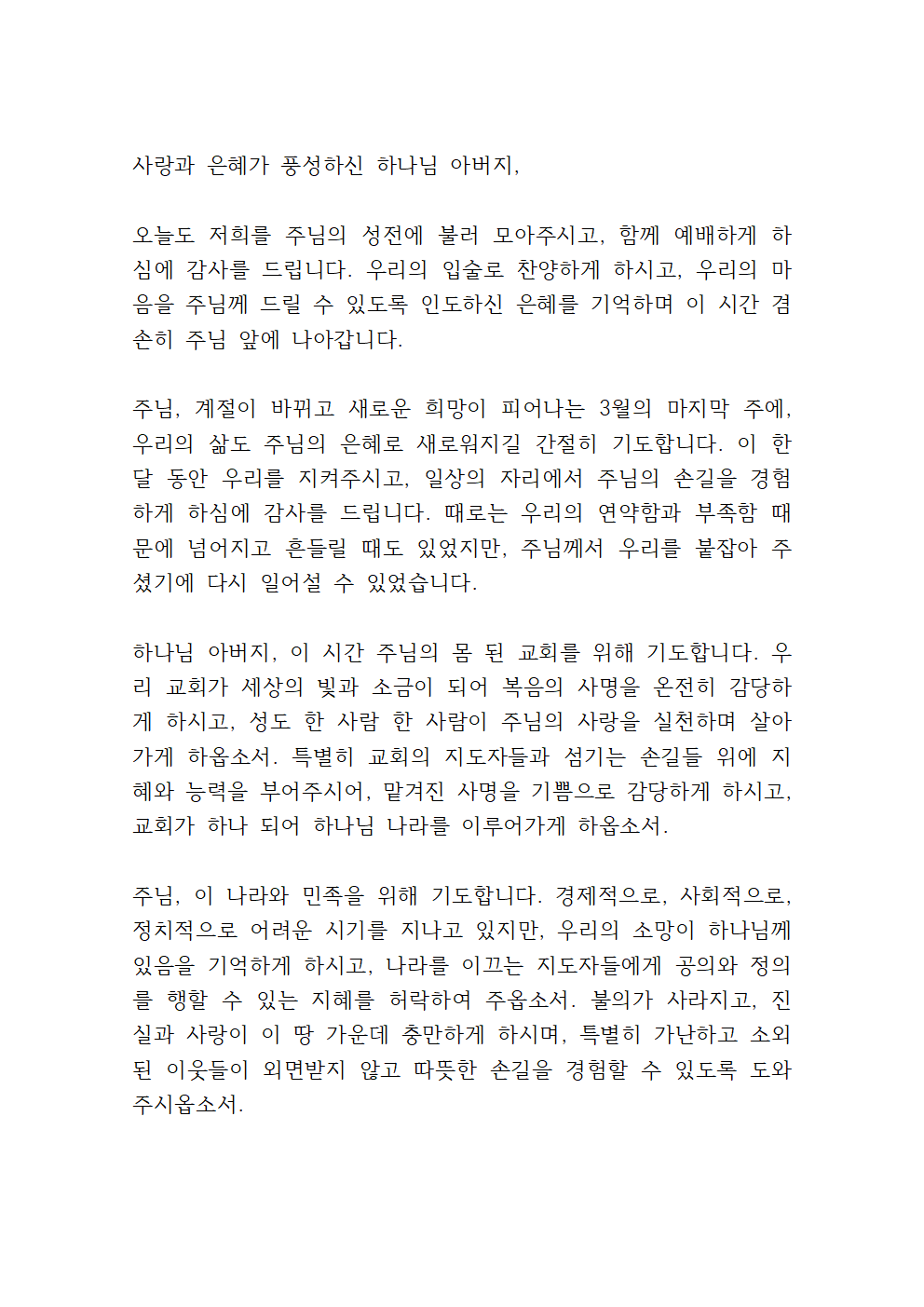 2025년 3월 마지막 주일예배 대표기도문 파일