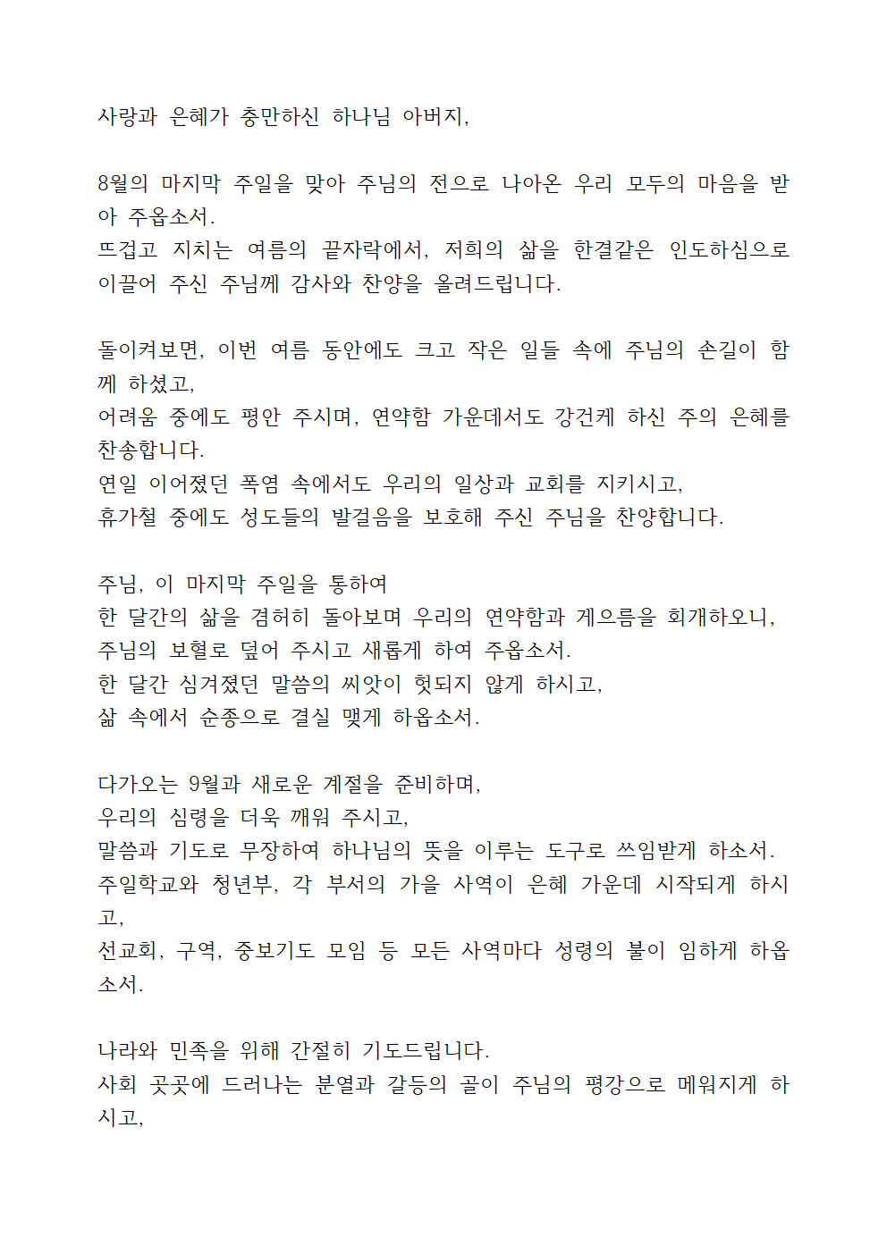 8월 마지막주 대표기도문 (2)