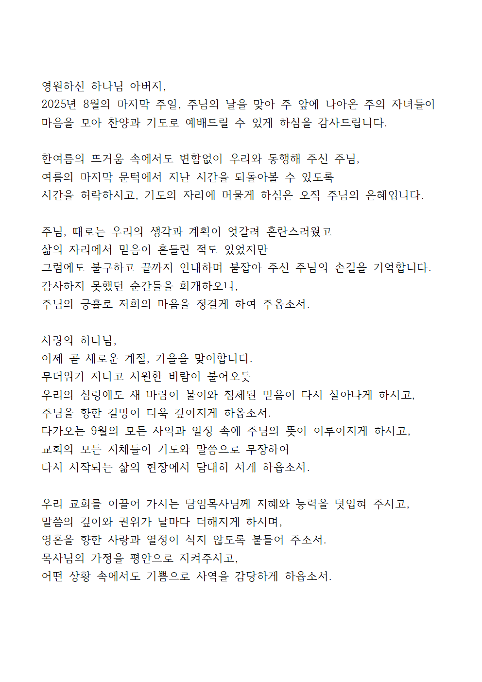 '2025년 8월 마지막주 대표기도문 모음'