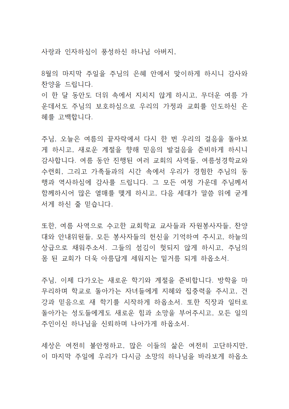 8월 마지막주 대표기도문 (4)