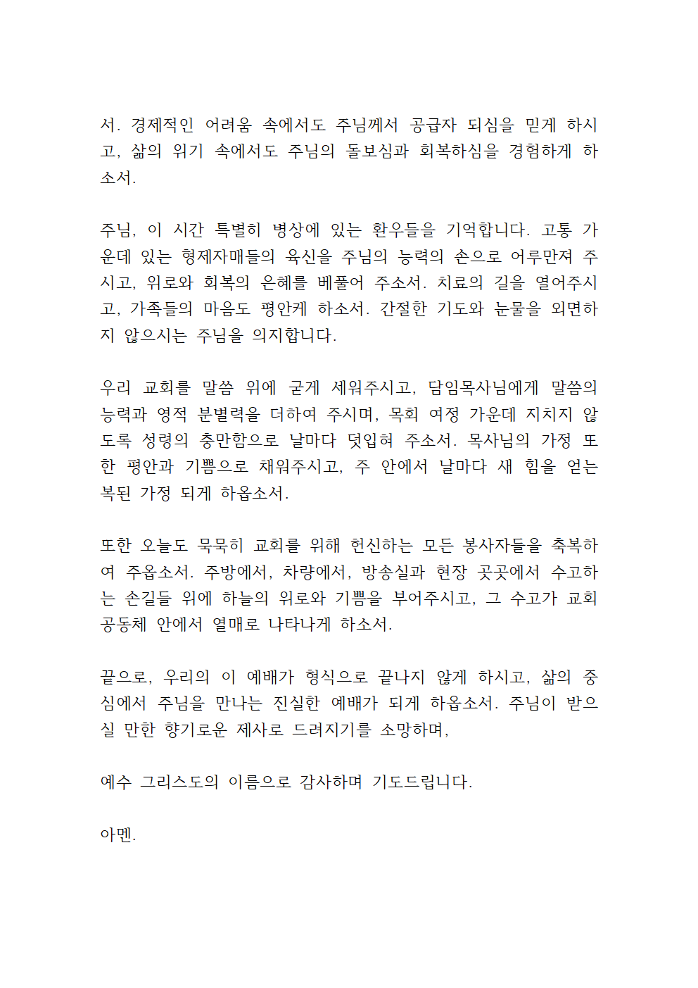 개인적 경험보다 가정·교회·사회 전체의 필요와 간구를 포함하는 것이 바람직합니다.