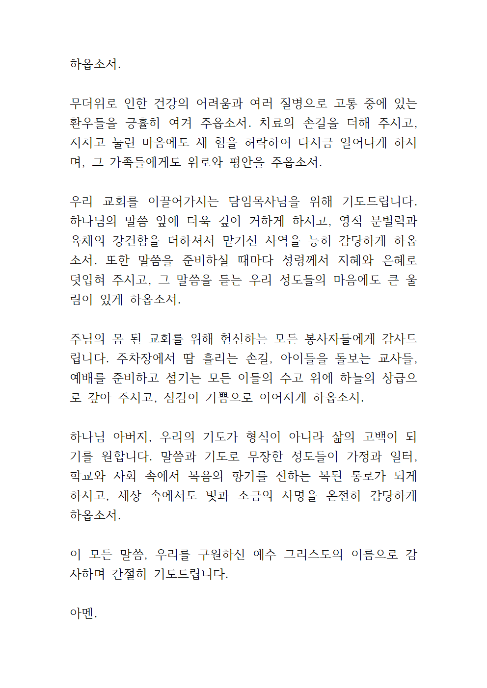 8월 첫째주일 대표기도문 (hwp 파일)