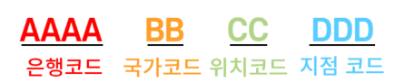 SWIFT 코드는 8자리 또는 11자리로 구성됩니다: